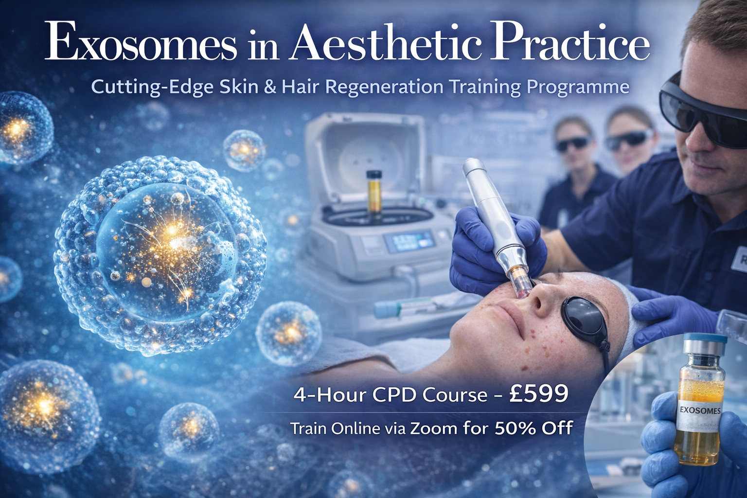 Our Exosomes in Aesthetic Practice Course is a 4-hour CPD-accredited programme designed for practitioners who want to stay ahead of the curve in regenerative and biologic aesthetic treatments.