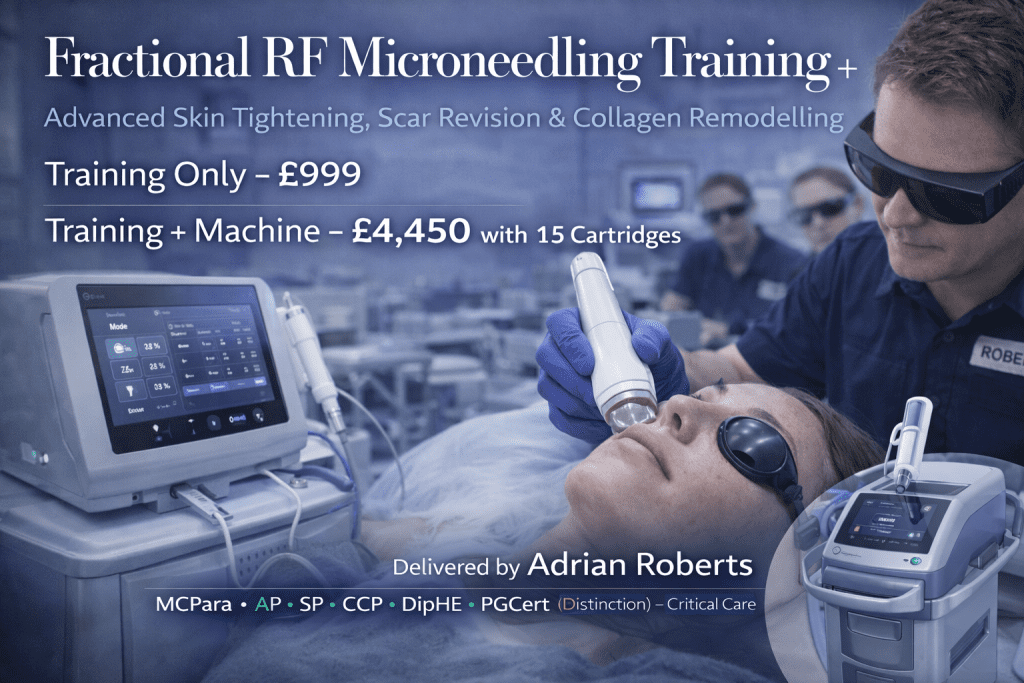 Cost: £ £999 Training Only – 💷 Training + Professional RF Microneedling Device – £4,450